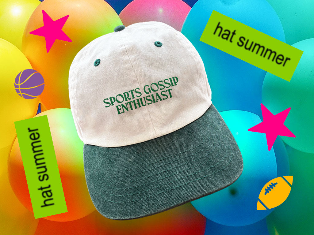 The Sports Gossip Enthusiast hat is to me what the bottom of the Declaration of Independence is to the founding fathers. IT'S. MY. SIGNATURE. And it's back in a new fun color combo for summer.